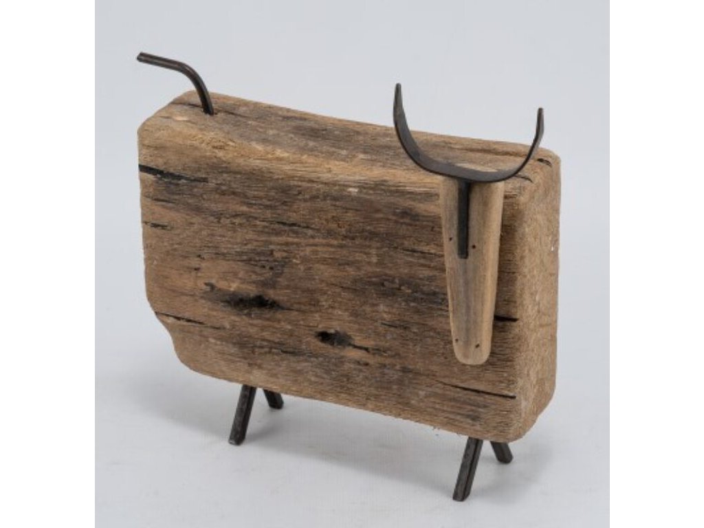 Dekorativní Býk dřevo kov 14,5 x 6,5 x 15 cm