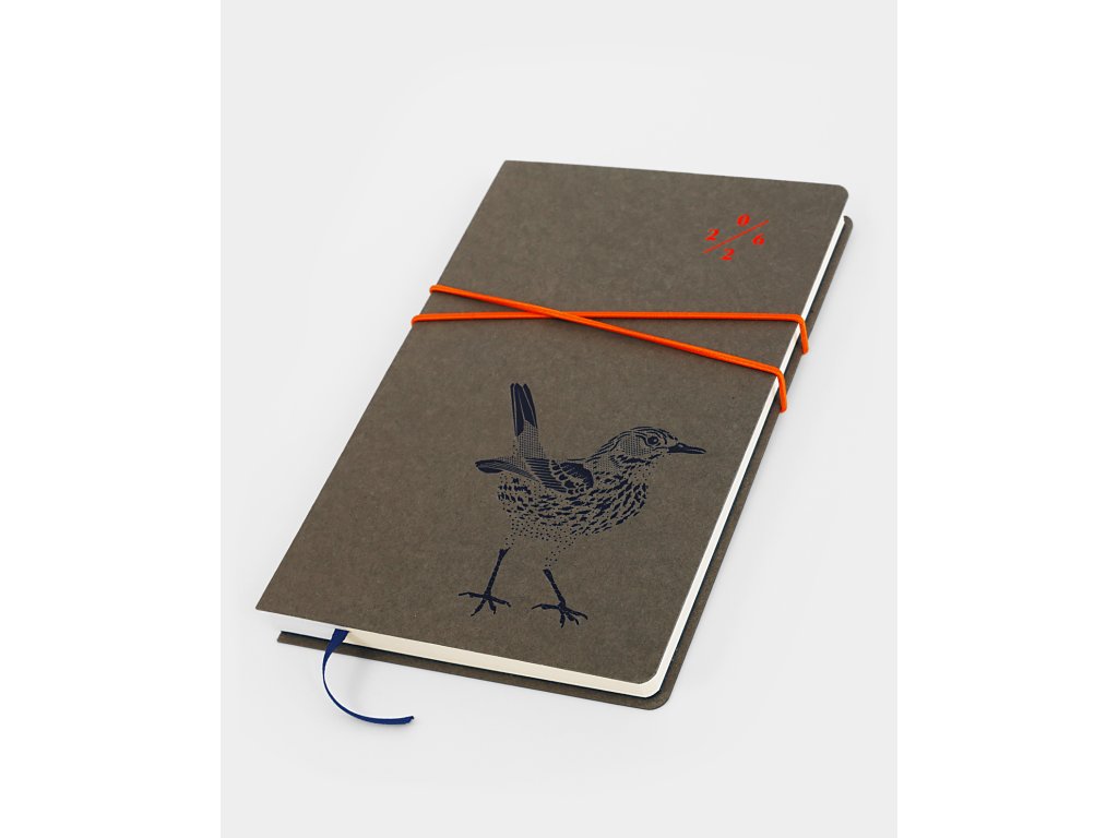 4 barvy / formát diáře 123×186 mm / obálka recyklovaný karton Gmund Les Naturals – Ardoise / knihtisk kovovou matricí / ražba folií / vnitřní blok Holmen Book Cream 80gr / offsetový tisk / otevřená vazba šitá barevnou nití