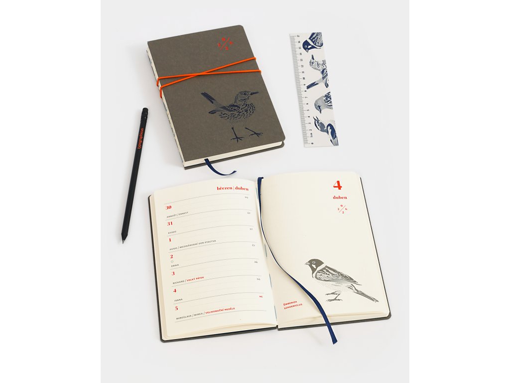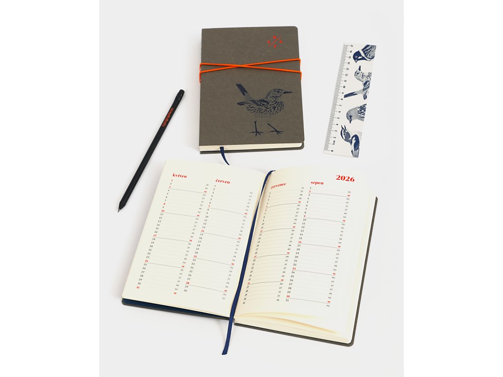 Týdenní diář typographicus 2026, s obálkou vytištěnou knihtiskem. Baleno v dárkové krabičce z kraftového kartonu.