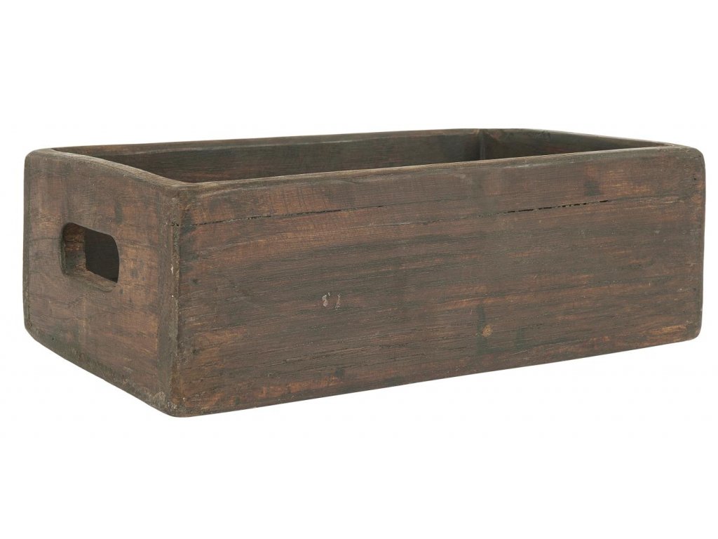 Tento tmavý dřevěný box je vyroben v Indii z recyklovaného dřeva, které pochází z demoličního materiálu. Každý kus má svůj vlastní charakter díky různým druhům dřeva a různým známkám stáří.