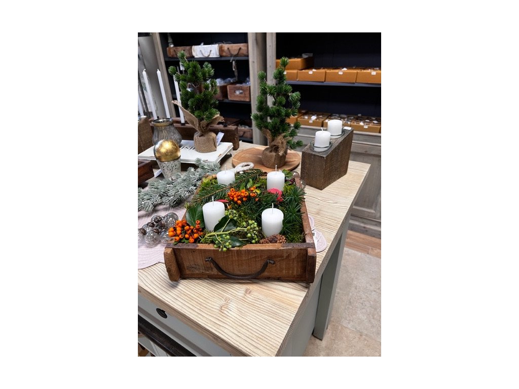 Tento dřevěný box je vyroben z recyklovaného starého dřeva, což mu dodává jedinečný a rustikální vzhled. Jeho rozměry jsou 7,5 cm na výšku, 22,5 cm na délku a 22,5 cm na šířku.