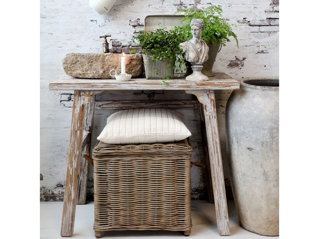 Dřevěný stolek s bílou patinou je krásným a funkčním doplňkem do interiéru, který vnese do prostoru jemný nádech venkovského a vintage stylu. Díky své velikosti 75x90x45 cm se hodí jako odkládací nebo konzolový stolek do předsíně, obývacího pokoje či ložnice, kde poskytne praktickou plochu na dekorace, lampu, květiny nebo drobné předměty každodenní potřeby.