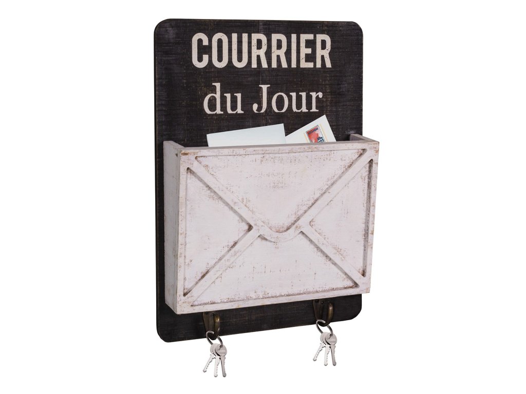 Věšák nabízí dostatek prostoru pro zavěšení klíčů, drobných doplňků nebo malých kabelek, a zároveň poskytuje praktickou přihrádku na poštu či dopisy. Rozměry 27 × 7,5 × 36 cm umožňují pohodlné umístění na stěnu, aniž by věšák zabíral příliš místa.