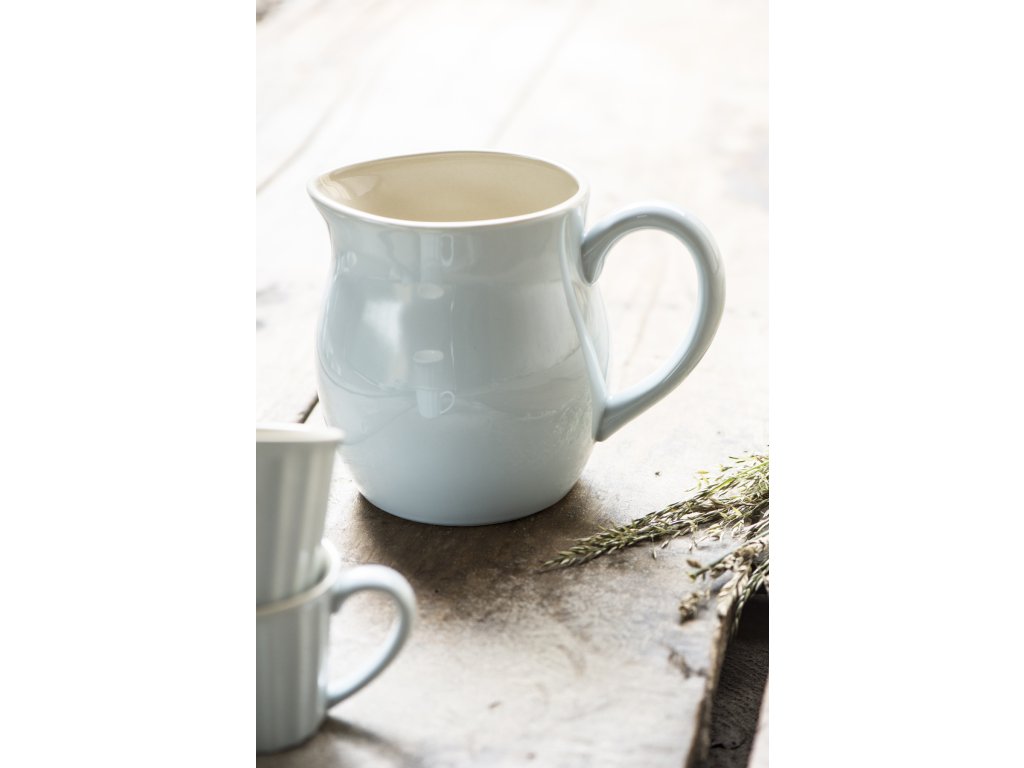 Představujeme vám náš velký keramický džbán o objemu 2,5 litru. Jeho nádherný světle modrý design je doplněn krémovou výplní uvnitř, což vytváří působivý kontrast.