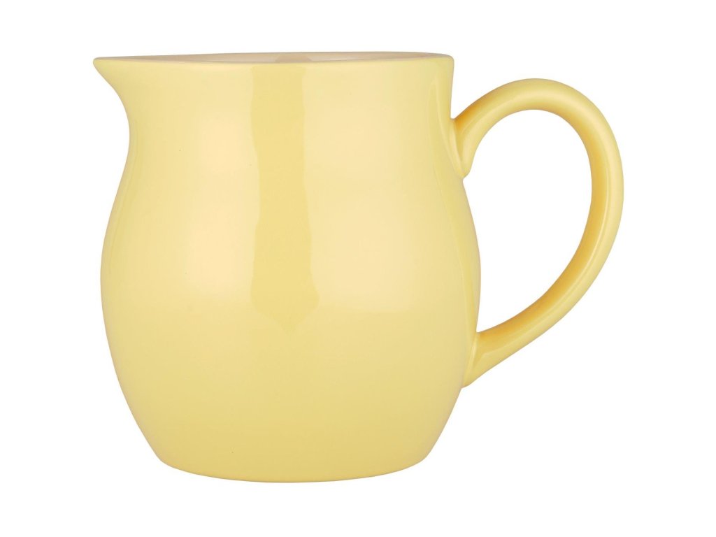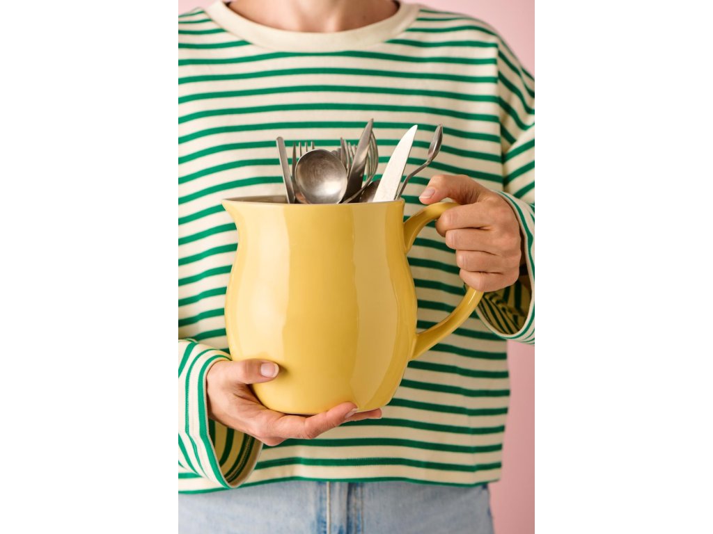 Velký keramický džbán o objemu 2,5 litru je praktickým a zároveň dekorativním doplňkem, který zaujme svým výrazným designem. Jeho sytě žlutý vnější povrch je doplněn krémovou glazurou uvnitř, což vytváří krásný kontrast a dodává džbánu osobitý charakter.