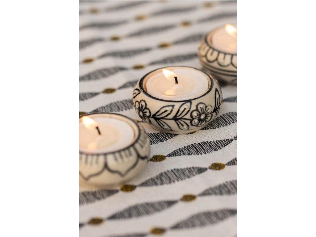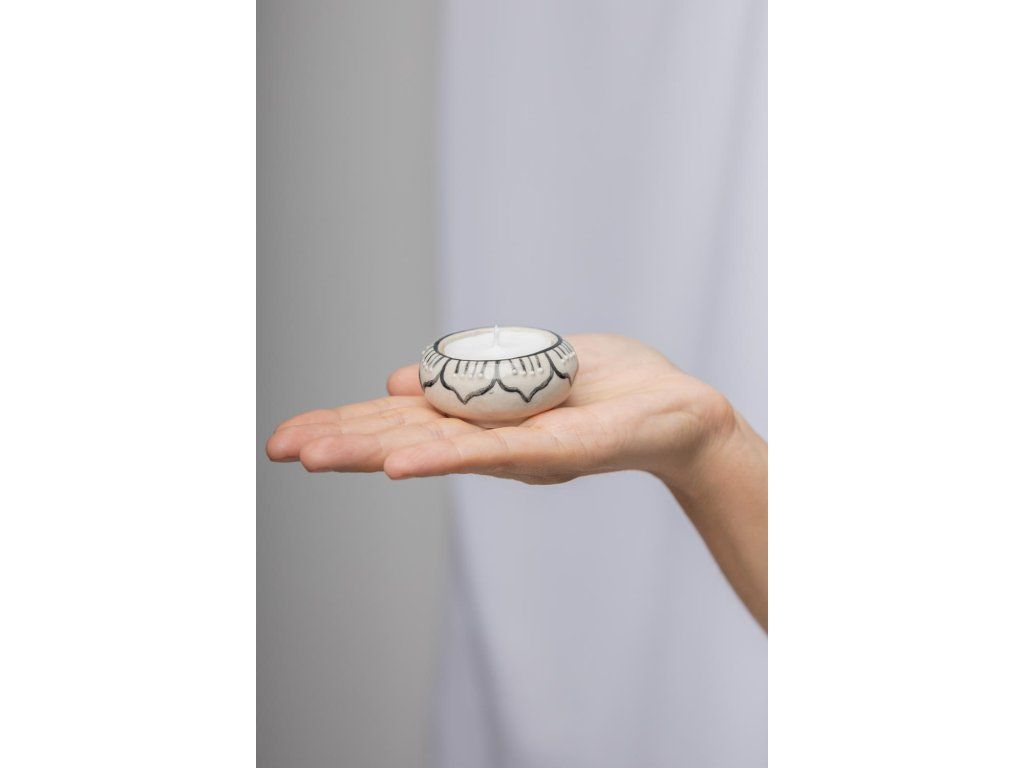 Jeho kompaktní rozměry jsou vhodné pro umístění na stůl, police nebo kamkoliv jinam, kde si přejete vytvořit teplý a relaxační prostor. Vyrobena z kvalitní keramiky, zdobená svícenka přidává do místnosti vkusný a dekorativní prvek.