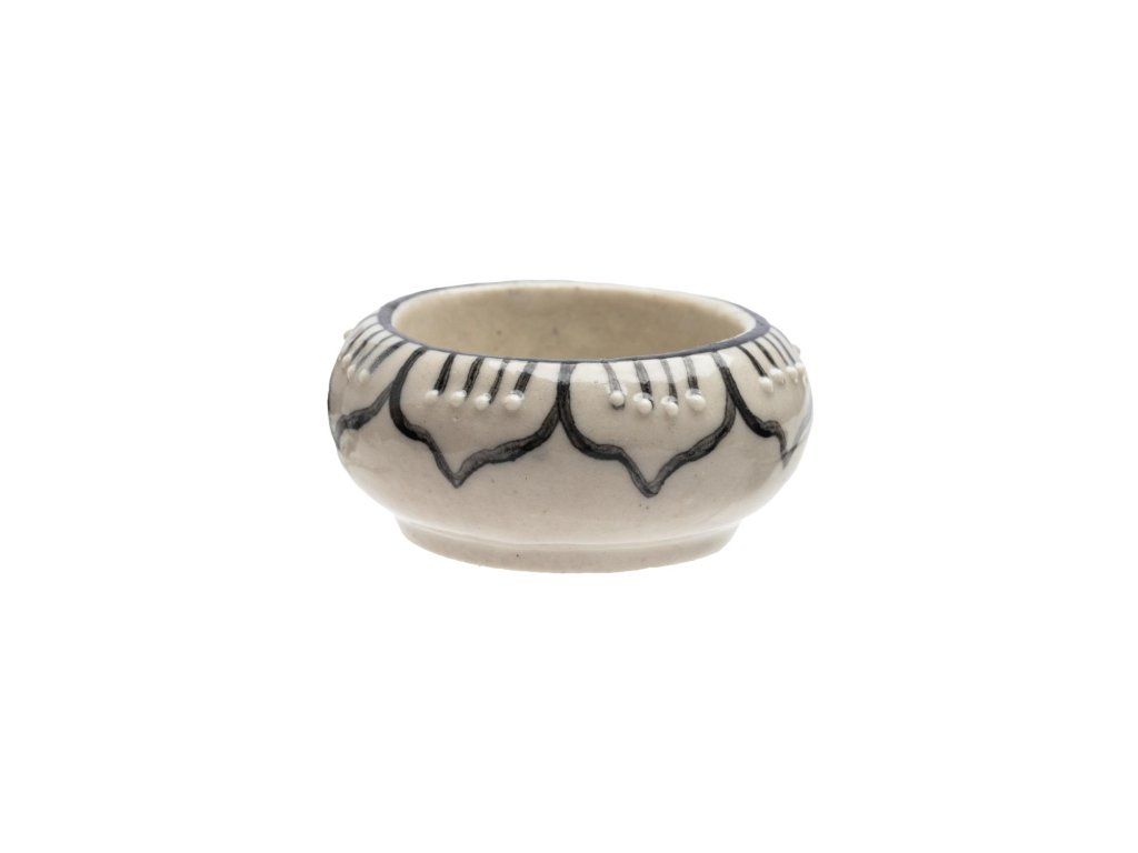 Keramický zdobný svícínek na čajovou svíčku o rozměrech 5,5 x 2,5 cm představuje krásný a útulný doplněk pro vaše prostředí. Tento svícínek je ideální pro vytváření intimní atmosféry a útulného osvětlení.