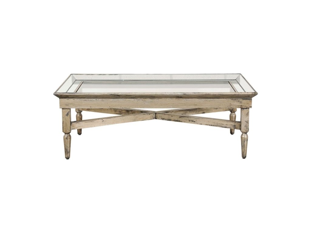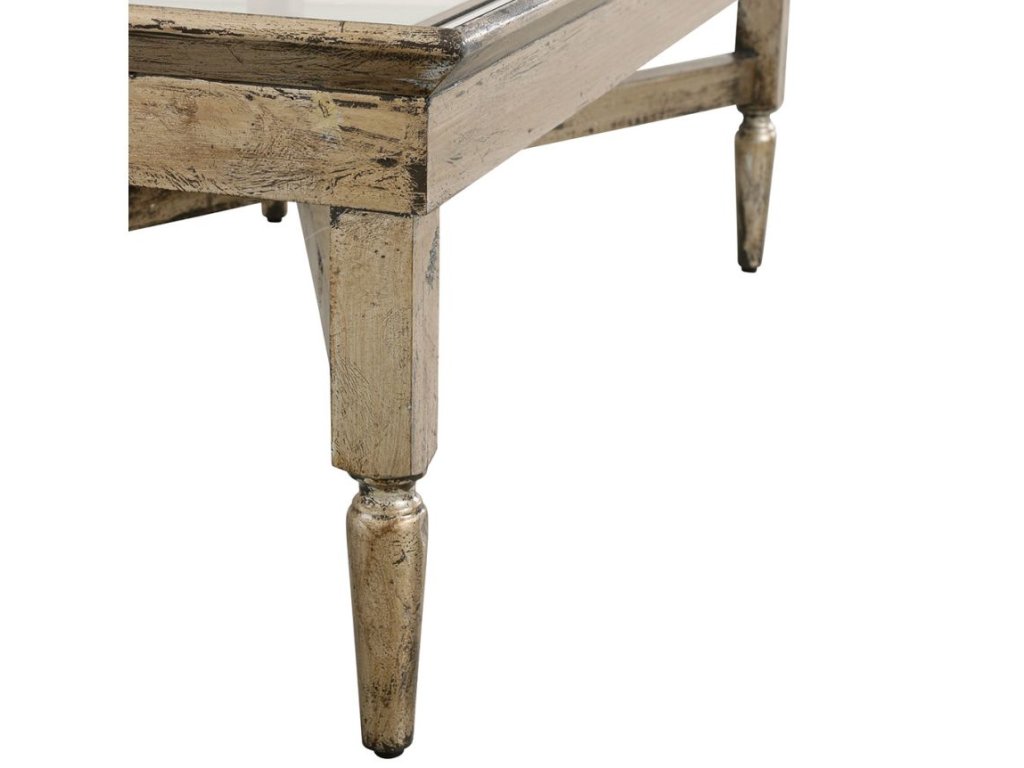 Konferenční stolek o rozměrech 130 × 70 cm je elegantním doplňkem interiéru, který na první pohled zaujme svou zrcadlovou konstrukcí a skleněnou deskou. Tento kousek kombinuje moderní prvky s jemným nádechem vintage stylu, a díky patině působí sofistikovaně a přirozeně zapadne i do klasicky laděných místností.