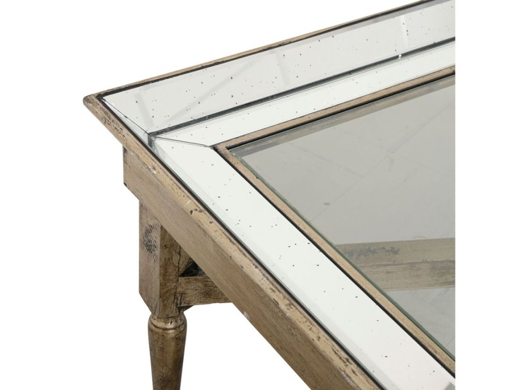 Základ tvoří pevná dřevěná konstrukce, která zaručuje stabilitu a dlouhou životnost. Zrcadlové plochy dodávají stolku vzdušnost a opticky zvětšují prostor, zatímco skleněná horní deska podtrhuje luxusní vzhled a zároveň je praktická na údržbu.