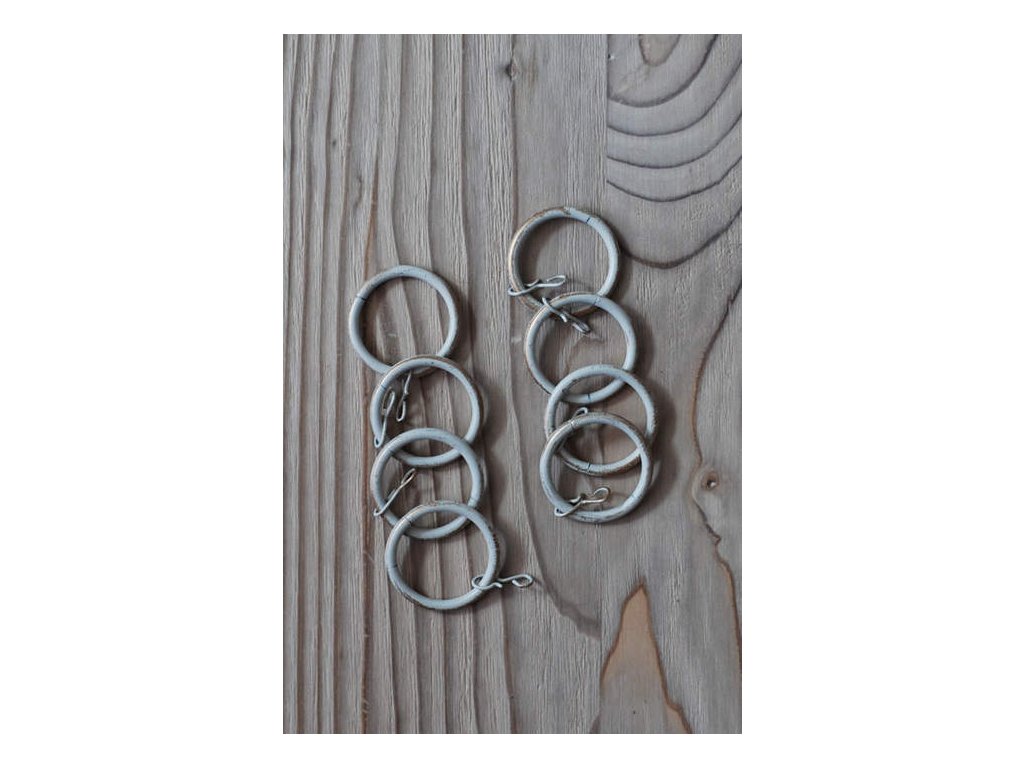 Tato sada obsahuje 8 kovových kroužků k záclonové tyči s efektní patinou. Tyto kroužky jsou praktickým doplňkem pro záclonové tyče a mohou být použity k zavěšení záclon a závěsů.