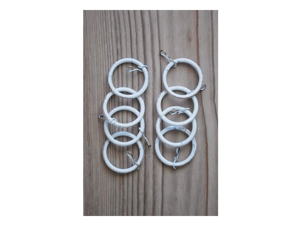 Tato sada obsahuje 8 kovových kroužků k záclonové tyči s efektní patinou. Tyto kroužky jsou praktickým doplňkem pro záclonové tyče a mohou být použity k zavěšení záclon a závěsů.