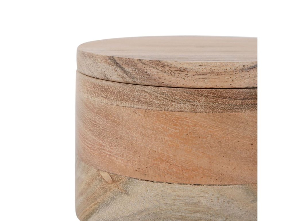Krabička s víčkem z akáciového dřeva je elegantním a praktickým doplňkem do každé domácnosti. Přirozená kresba a teplý odstín akáciového dřeva dodávají krabičce rustikální a zároveň sofistikovaný vzhled, který se hodí na polici, komodu či stůl.