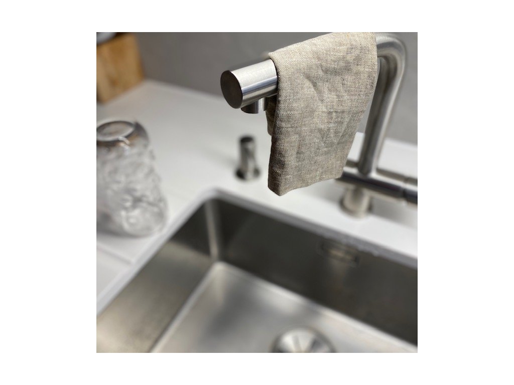 Lněný hadřík na nádobí s úchytkou - 100% len khaki, přírodní