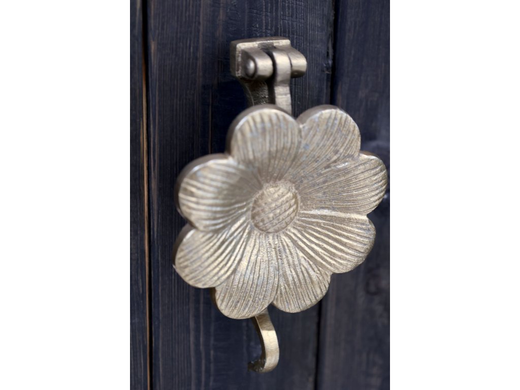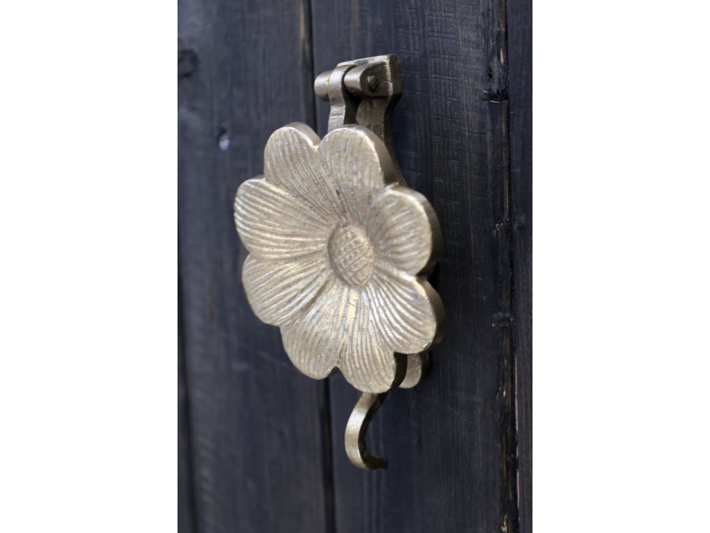 Mosazné klepadlo ve tvaru květiny je elegantní a výrazný doplněk, který dodá vstupním dveřím osobitý charakter a nadčasový vzhled. Díky svému dekorativnímu provedení působí velmi vkusně a zároveň funkčně, a krásně vynikne na dřevěných dveřích, brance nebo vratách. Motiv květiny dodává klepadlu jemnost a lehký nádech romantiky, který se dobře kombinuje jak s tradičním, tak i rustikálním či vintage stylem.