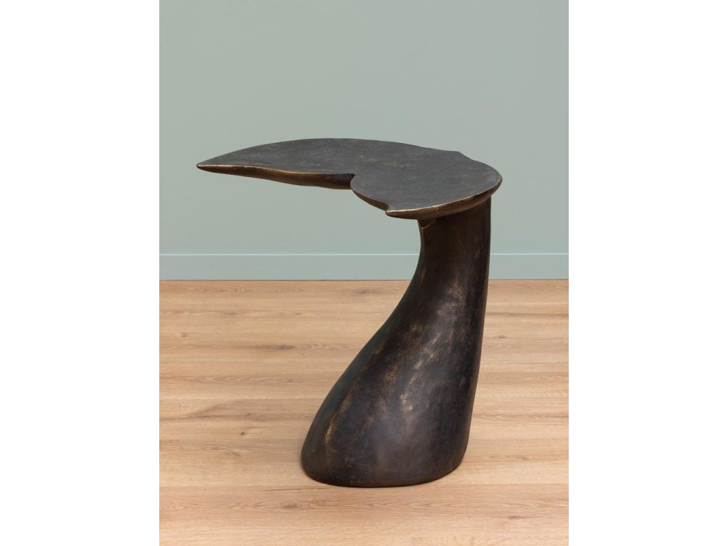Stolek je vyroben z pryskyřice, která umožňuje detailní zpracování tvaru a zároveň zajišťuje pevnost a stabilitu. Díky rozměrům 60 × 62 × 52 cm nabízí dostatek prostoru pro odložení knih, dekorací, lampy nebo šálku kávy, a přitom si zachovává kompaktní proporce.