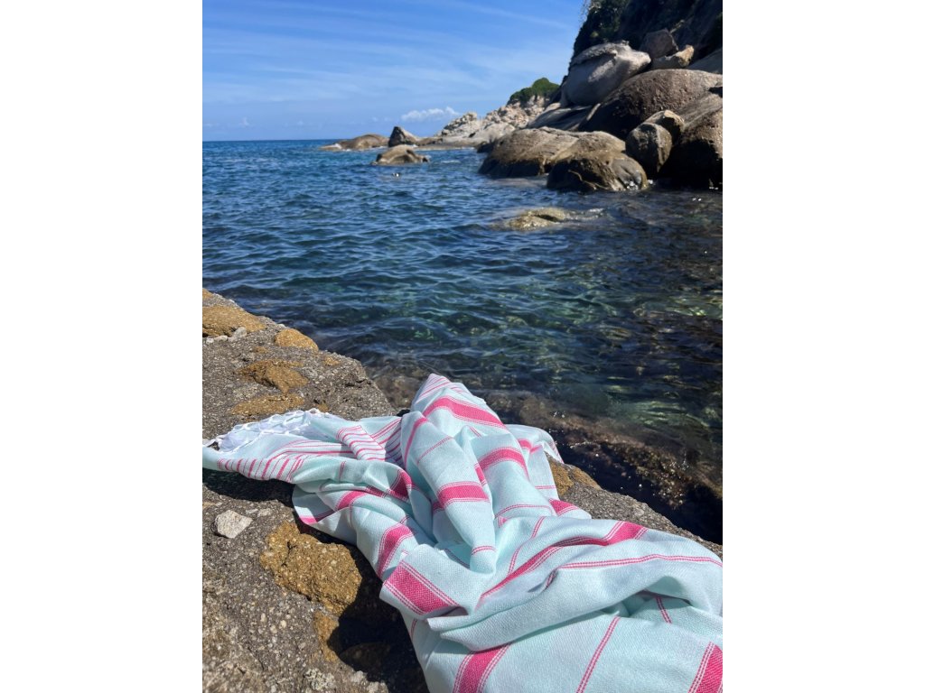 Osuška bavlněná mentolově zelená s rubínově červenými proužky