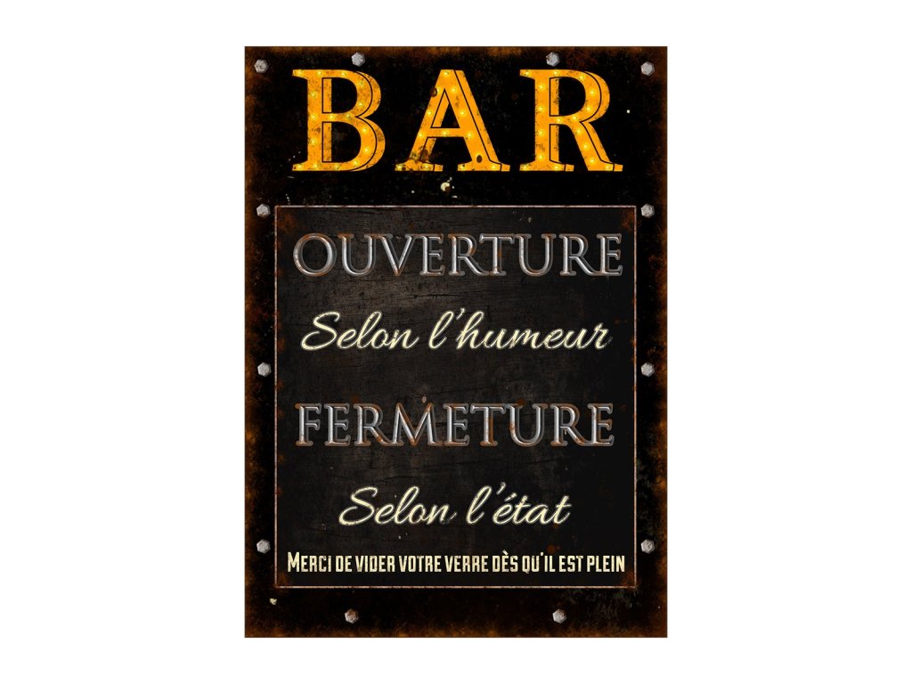 Plechová cedule Bar Ouverture je stylovým a dekorativním doplňkem do domácího baru, kuchyně nebo jídelny. Vyrobena z pevného plechu, působí robustně a zároveň elegantně a snadno se stane výrazným prvkem interiéru.