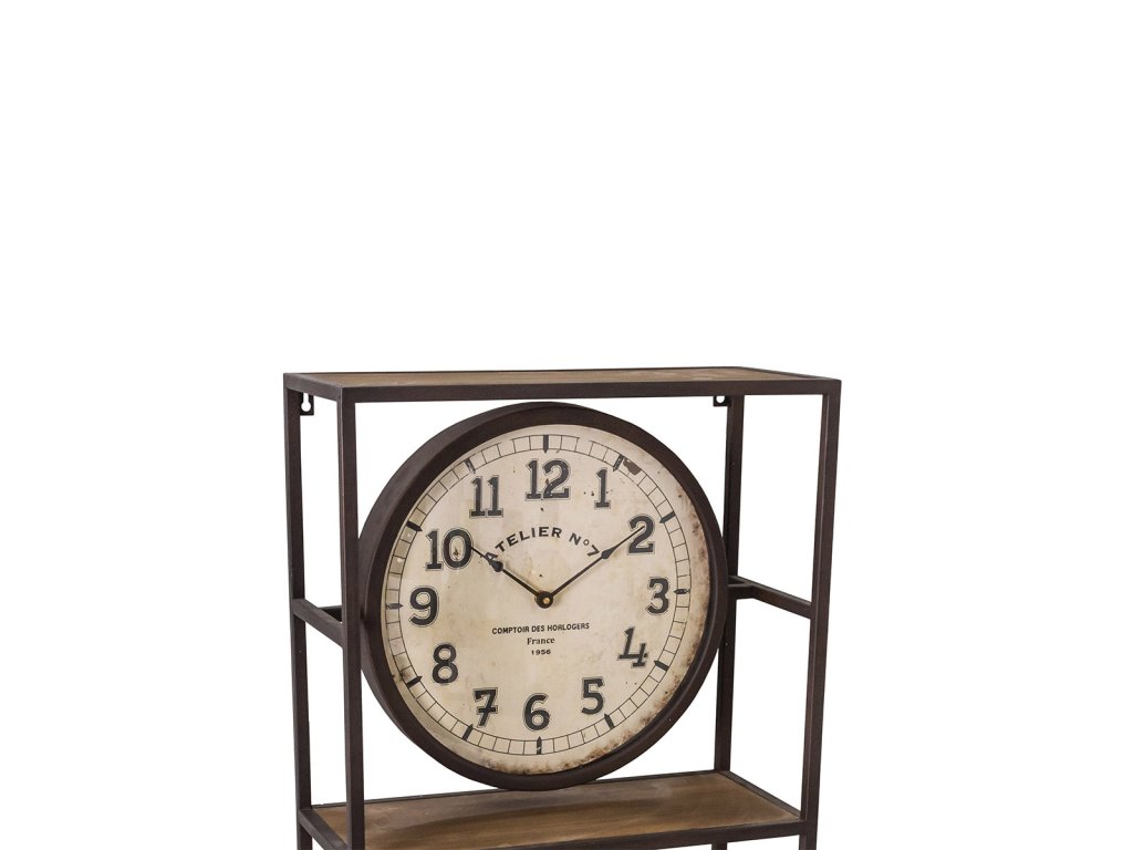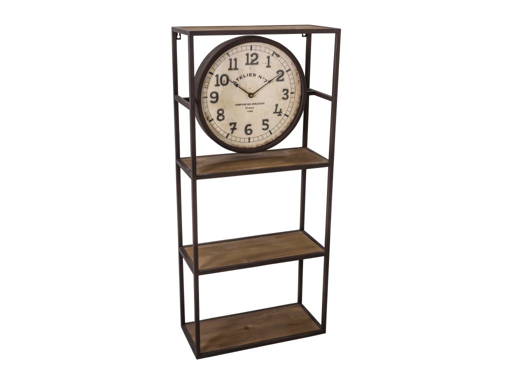 Regál dřevo kov s hodinami