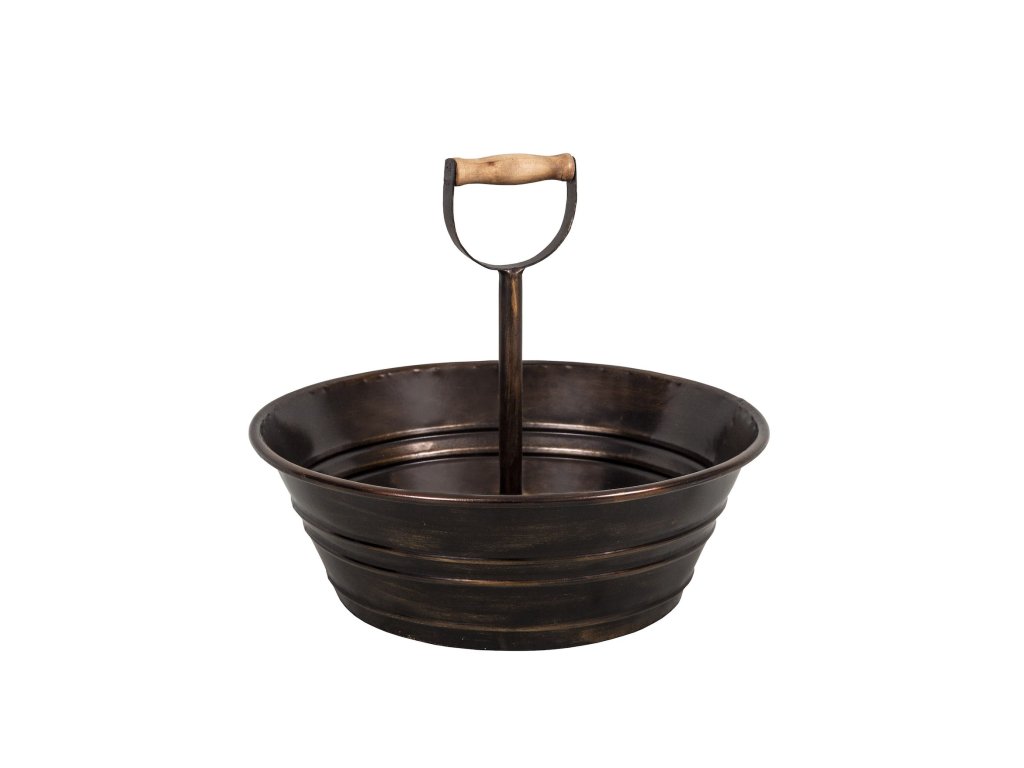 Umyvadlo je vyrobeno z plechu, který zajišťuje pevnost a odolnost. Praktická rukojeť umožňuje snadné přenášení i manipulaci, což oceníte nejen při používání, ale také při dekorativním aranžování. Rozměry 30 × 35 cm poskytují dostatek prostoru pro různé využití.