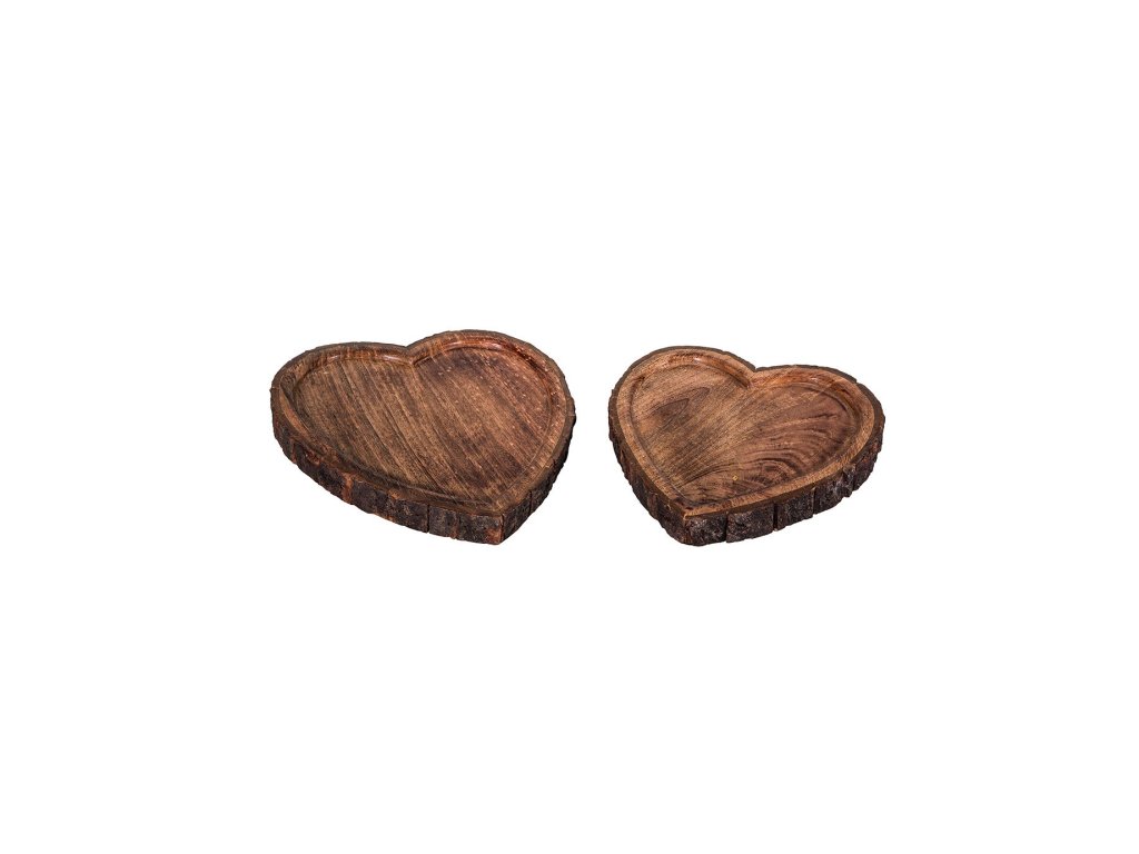Sada 2 ks dřevěných srdcí z mangového dřeva