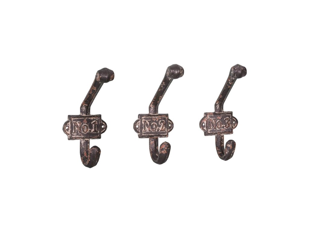 Sada tří litinových věšáků s označením čísly 1, 2 a 3 je praktickým a zároveň stylovým doplňkem, který dodá vašemu interiéru nádech klasiky a řádu. Věšáky jsou vyrobené z pevné litiny, což zaručuje jejich odolnost a dlouhou životnost. Robustní provedení v kombinaci s tmavým litinovým vzhledem působí elegantně a hodí se do interiérů laděných do industriálního, venkovského i retro stylu.