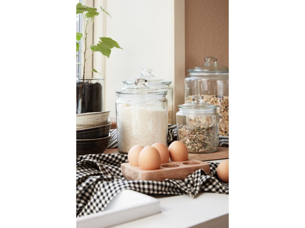 S průměrem 20 cm a výškou 29 cm nabízí dostatek prostoru pro uskladnění sušenek, těstovin, cereálií, mouky nebo jiných sypkých potravin. Díky velkému objemu 5,5 litru je ideální pro přehledné a praktické uspořádání kuchyně. Skleněná dóza tak spojuje funkčnost, kvalitní zpracování a stylový vzhled.