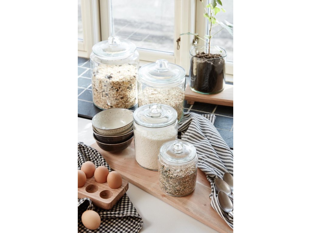 Skleněná dóza o objemu 5,5 litru je praktickým a elegantním doplňkem do kuchyně, spíže nebo jídelny. Díky svému jednoduchému a nadčasovému designu umožňuje přehledné uskladnění potravin a zároveň může sloužit i jako dekorativní prvek na kuchyňské lince či polici.