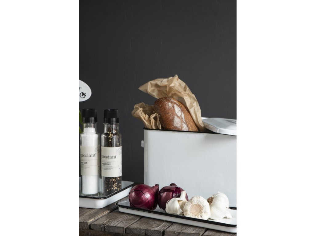 Tento smaltovaný chlebník v bílé barvě je skvělým doplňkem pro vaši kuchyňskou výbavu. S materiálem zvaným smalt získává tento chlebník na svém povrchu nejen výrazný vzhled, ale i odolnost proti poškrábání a nárazům. S jeho výškou 22 cm, hloubkou 34 cm a šířkou 35 cm poskytuje dostatečný prostor pro uchování chleba, pečiva a dalších pochoutek.