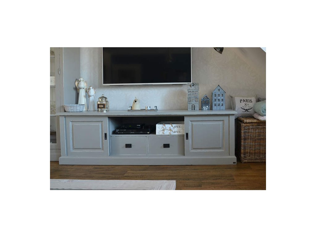 Výhodou této skříňky je možnost volby barvy a patiny, díky čemuž si můžete vybrat provedení, které nejlépe ladí s vaším interiérem. Díky svému provedení a velikosti se hodí do různých prostorů, ať už do obývacího pokoje, ložnice nebo jiného místa, kde potřebujete efektivně uspořádat elektroniku a zároveň si udržet estetiku.