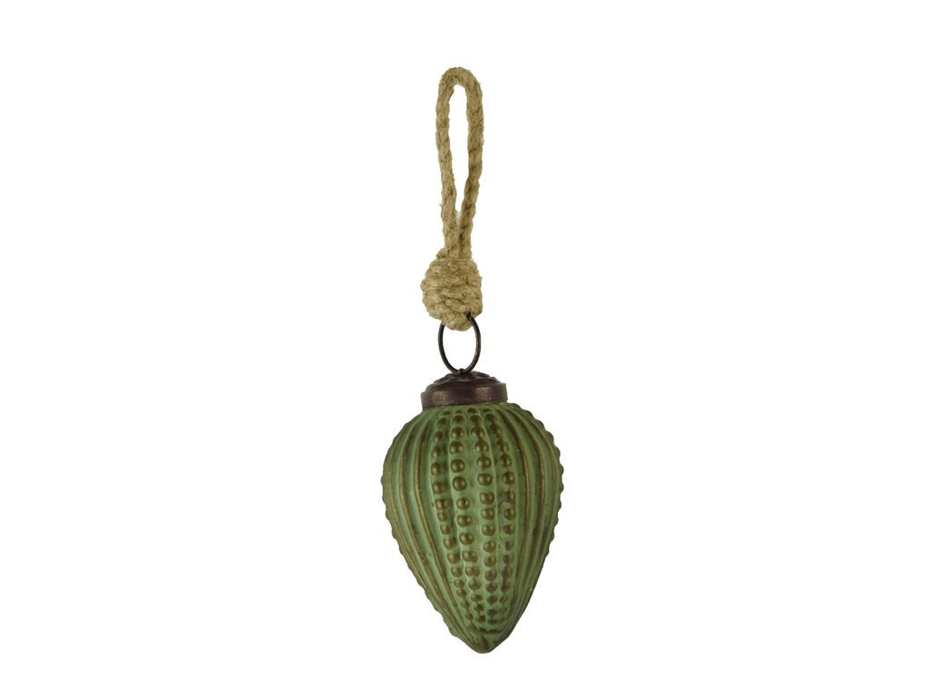 Vánoční skleněná ozdoba ve tvaru šišky v zelené barvě s patinou je elegantní dekorací, která vnese do vašeho domova sváteční atmosféru a jemný přírodní nádech. Patinovaný povrch dodává ozdobě vintage vzhled a podtrhuje její tradiční charakter.