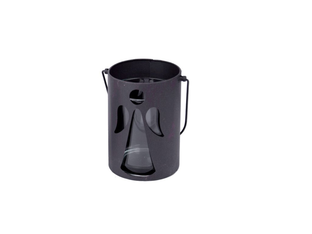 Vánoční svícen s motivem anděla je dekorací, která vnese do vašeho interiéru sváteční atmosféru a jemné kouzlo Vánoc. Na bocích svícnu je vyřezaný motiv anděla, skrz který proniká světlo svíčky, čímž vzniká krásný a hravý efekt stínů. Kombinace černého kovu a skla dodává svícnu elegantní a zároveň rustikální vzhled.