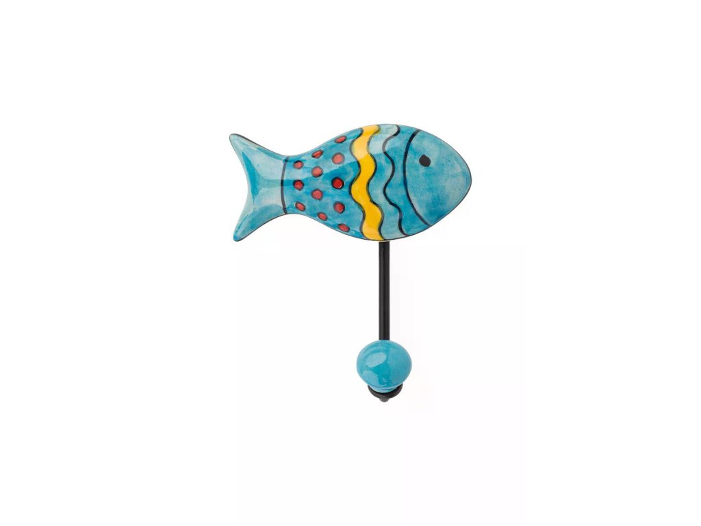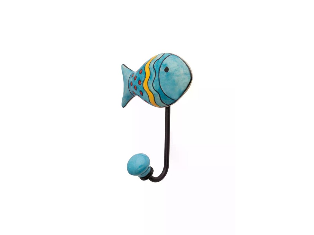 Zdobný keramický háček ve tvaru rybky je nejen praktickým, ale i dekorativním doplňkem do domácnosti. Každý háček je ručně vyrobený, díky čemuž je každý kus jedinečný a nese autentický charakter.